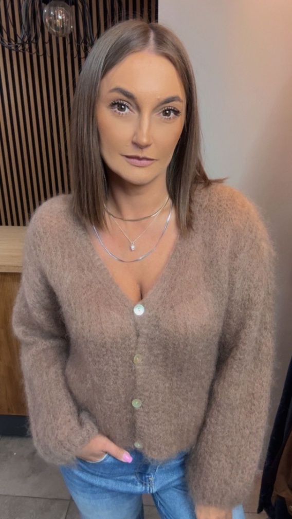 Niezwykle miękki, lekki i puszysty kardigan wykonany z wysokiej jakości przędzy: