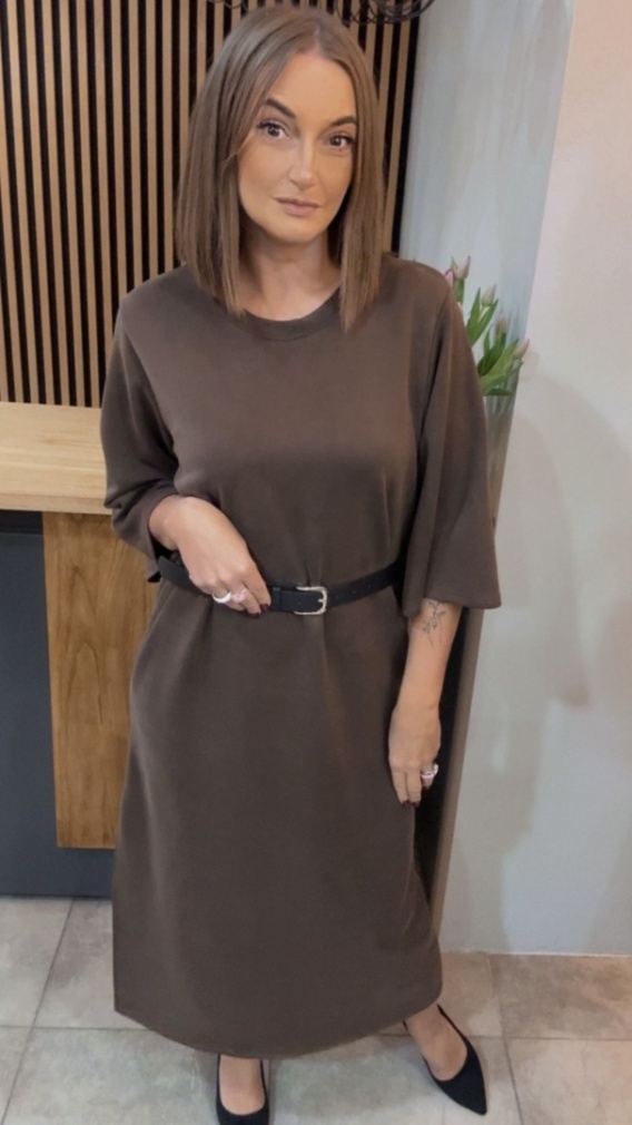 Model posiada luźne rękawy 3/4, klasyczny dekolt i długość do kostek, co sprawia, że jest to sukienka niezwykle uniwersalna – idealna na co dzień, do pracy, a także na wieczorne wyjście.