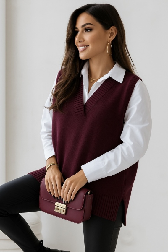 Wysoki ściągacz i głęboki dekolt V - dodają całości elegancji i ułatwiają łączenie z koszulami lub golfami.
