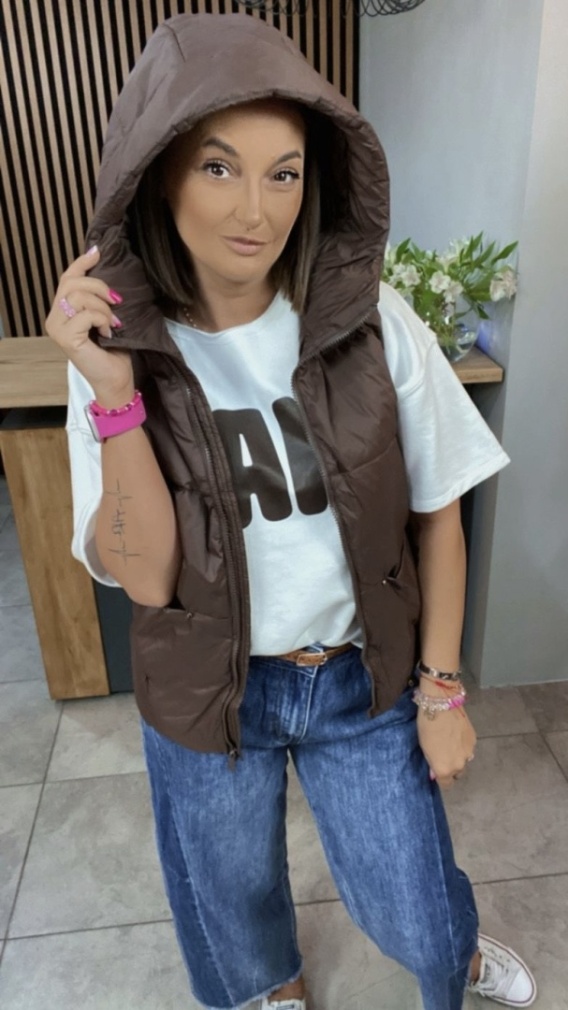 Kamizelka z kapturem Naturalny Puch Czekolada