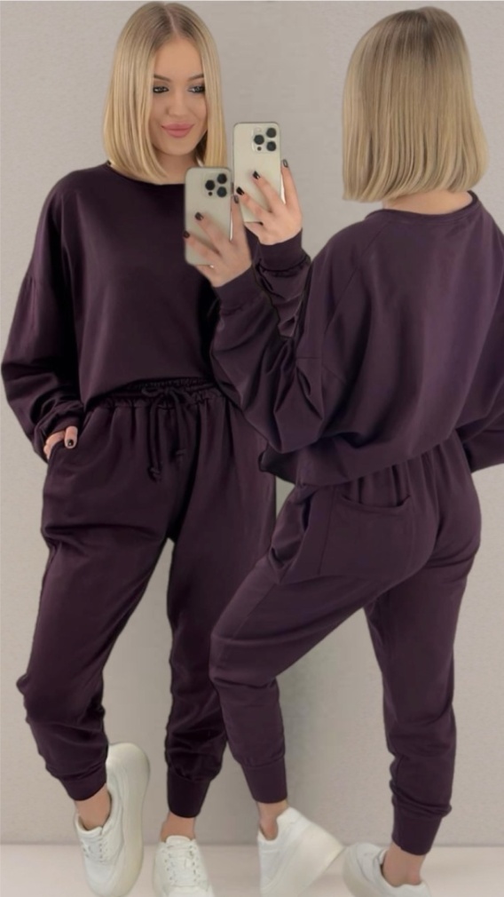 • Fason: luźna bluza z długim rękawem + dopasowane spodnie z elastycznym pasem