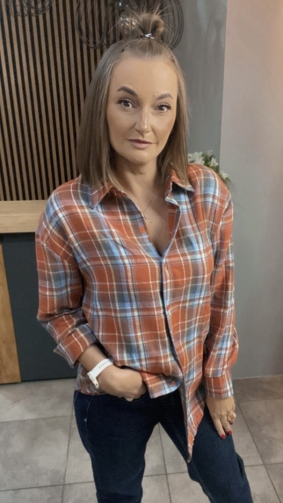 Koszula w kratę - pomarańczowo-niebieska