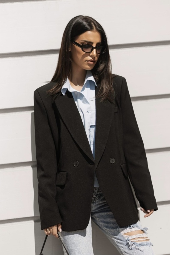 Stylowa, elegancka i niezwykle kobieca marynarka Madame Sue to model, który podkreśli każdą stylizację — od codziennych zestawów z jeansami po bardziej formalne looki. Jej lekko oversize’owy fason nadaje sylwetce nowoczesnego charakteru, a klasyczny krój sprawia, że pozostaje ponadczasowa.